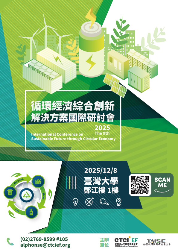 一、為促進循環經濟的發展,中鼎教育基金會、國立臺灣大學,共同主辦「2025第九屆循環經濟綜合創新解決方案國際研討會」(2025 The 9th